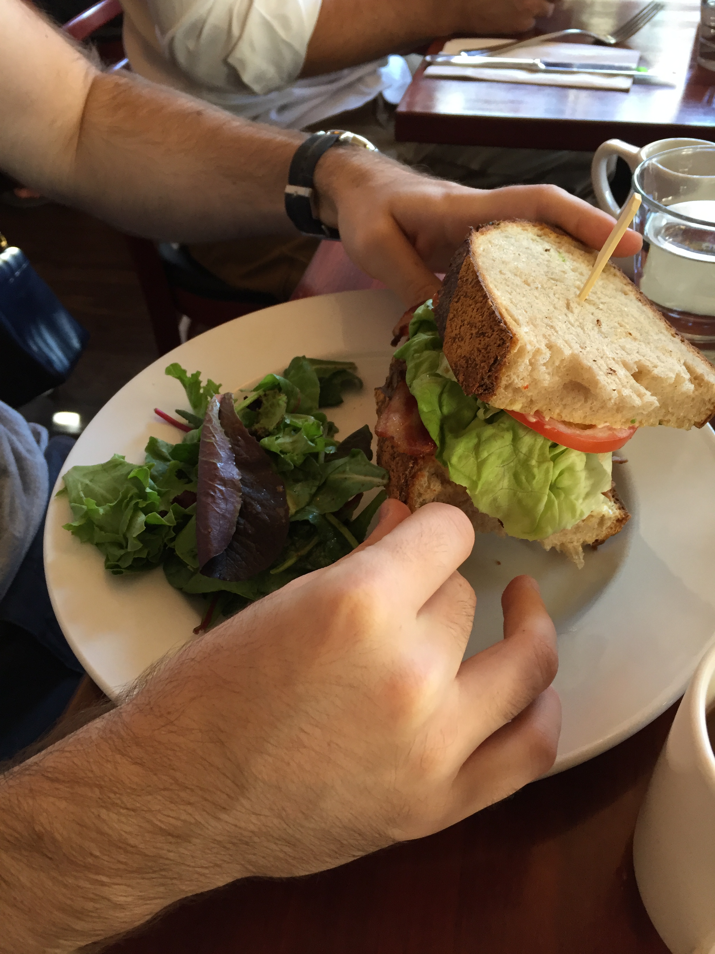 Kevin and I took an early morning flight that got us into SF around 10AM. Since my brother was at work and we were starving, we made our way to his go-to spot, The Grove. Our first time here, we walk in and we were handed a menu- the setup was quick service style so you order, pay, then sit. This workflow is really conducive when you do not have time to wait to be served, or have all the time in the world with no pressure to move (we saw people from both groups represented!). I ordered the smoked salmon and goat cheese sandwich and Kevin got the grove breakfast sandwich with an iced coffee. We settled into a nook and the food was promptly delivered to our table. Kevin raved about the iced coffee (wish I had first hand descriptors for you) and enjoyed his sandwich. I loved my lox sandwich as well- super tasty! Affordable, delicious food- I can see why this is one of my brother’s favorites.