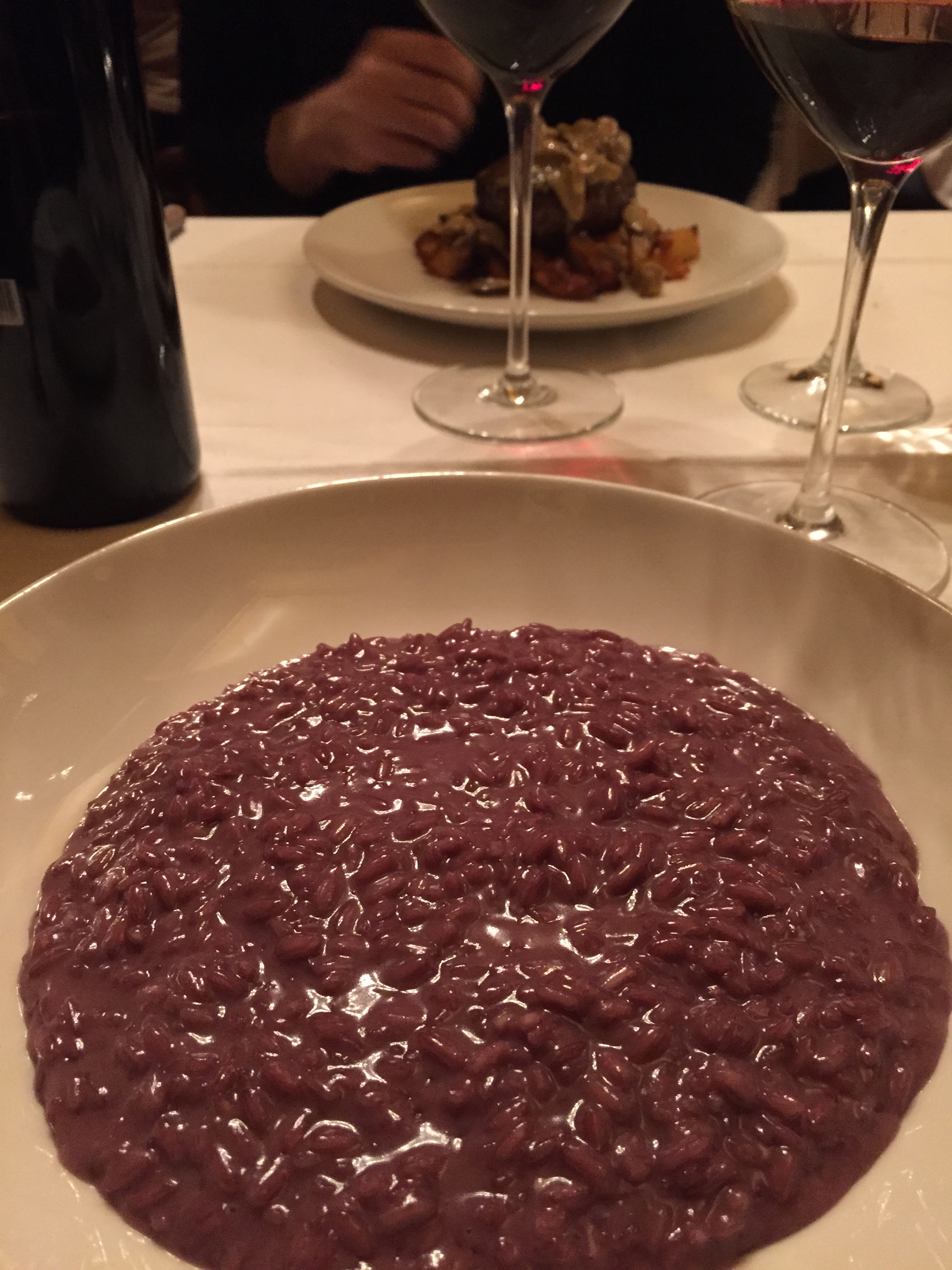 This was Kevin’s choice dinner spot for Verona so we were anxious to get there for our reservation at 9PM. Once we were seated and surrounded by rows and rows of wine bottles, Kevin was given an enormous wine book- I have never seen something so large as a menu! The wine glasses also matched- it was like drinking wine out of a fish bowl!