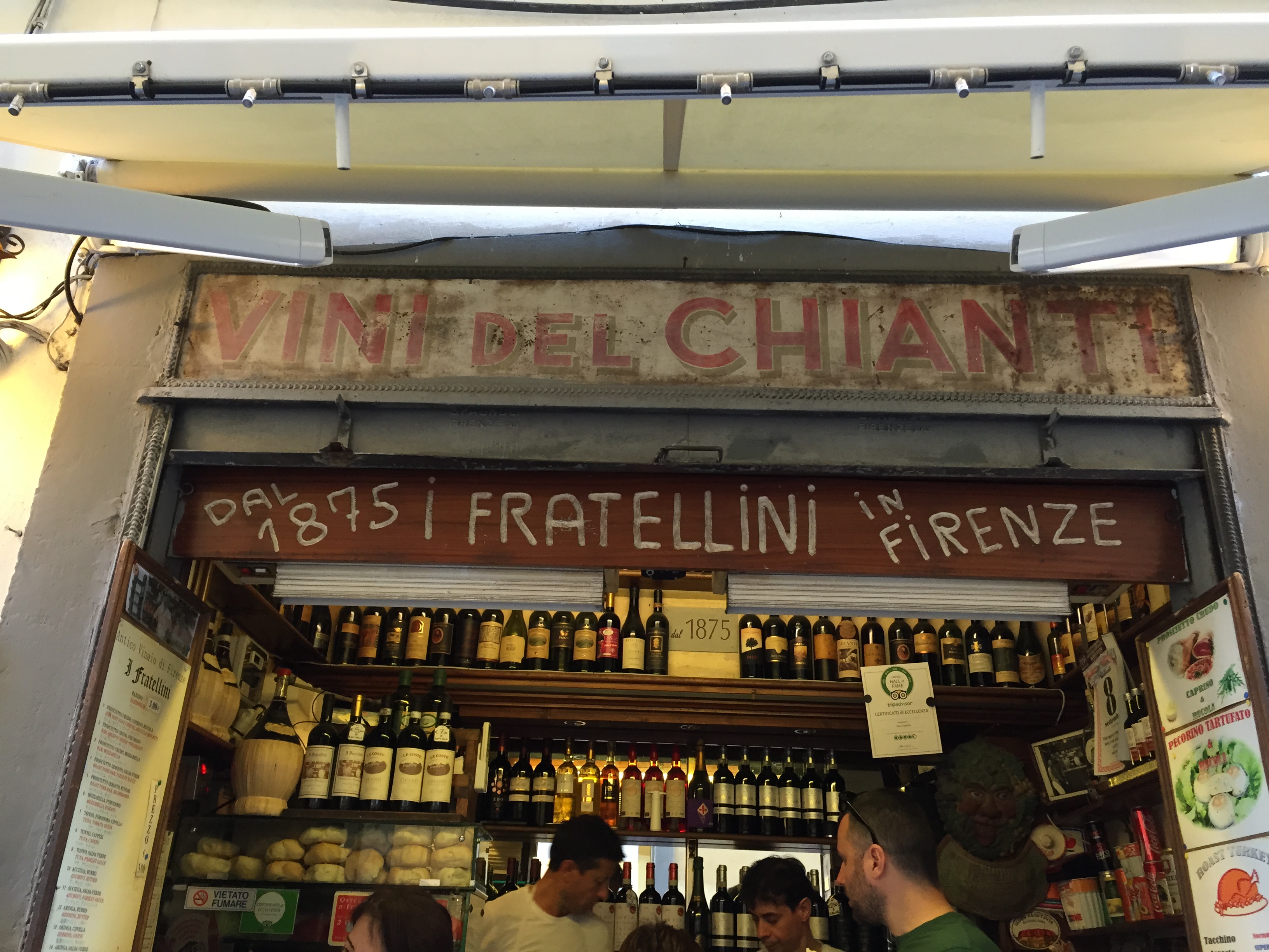 Working up an appetite, we grabbed lunch at Il Fratellini for sandwiches and wine. Since it is a small shop, everyone crowds around standing the the street while there are small shelves for your drinks. Simple sandwiches with fresh ingredients- I got tomato and mozzarella and Kevin got the prosciutto and mozzarella.