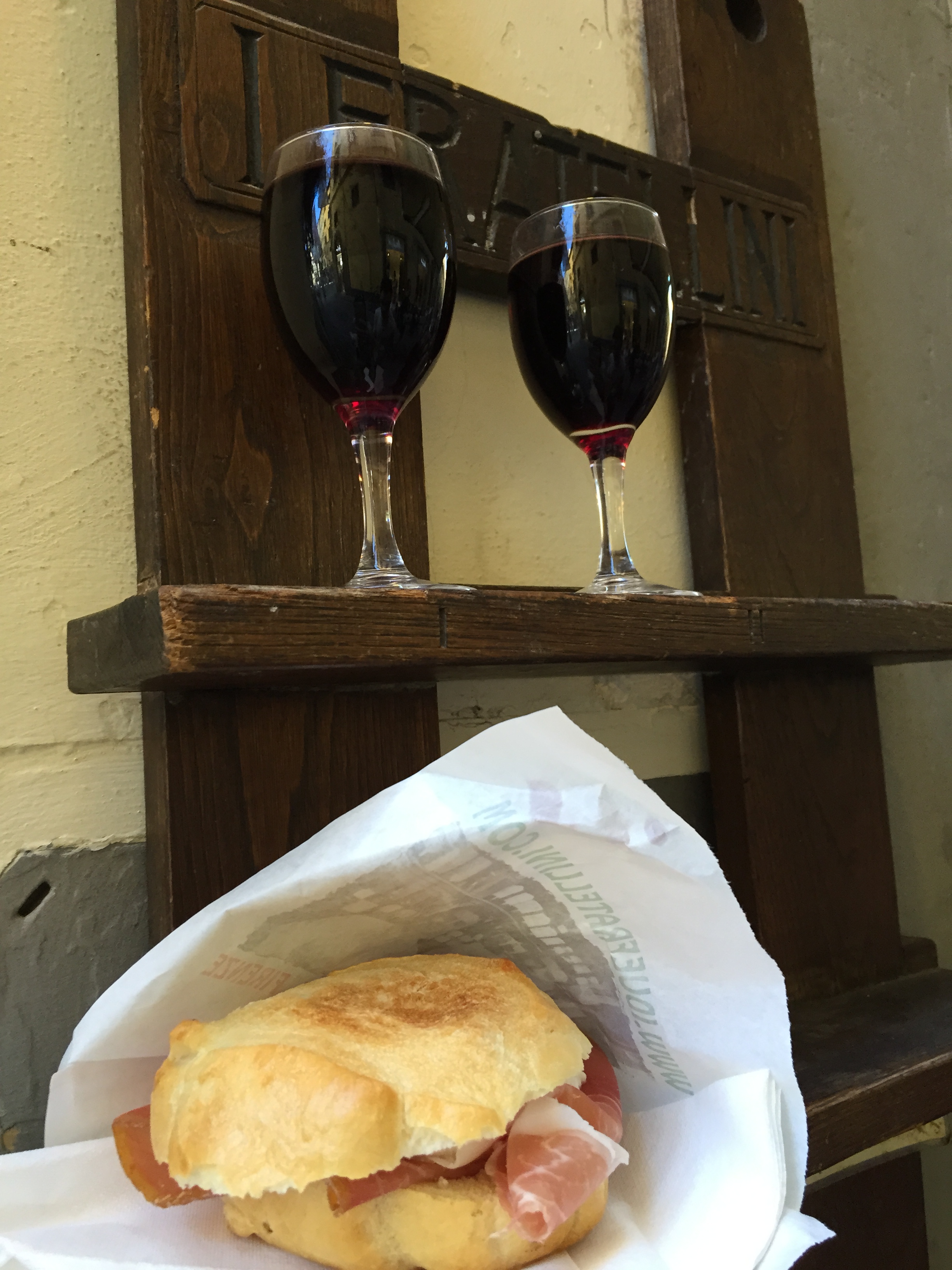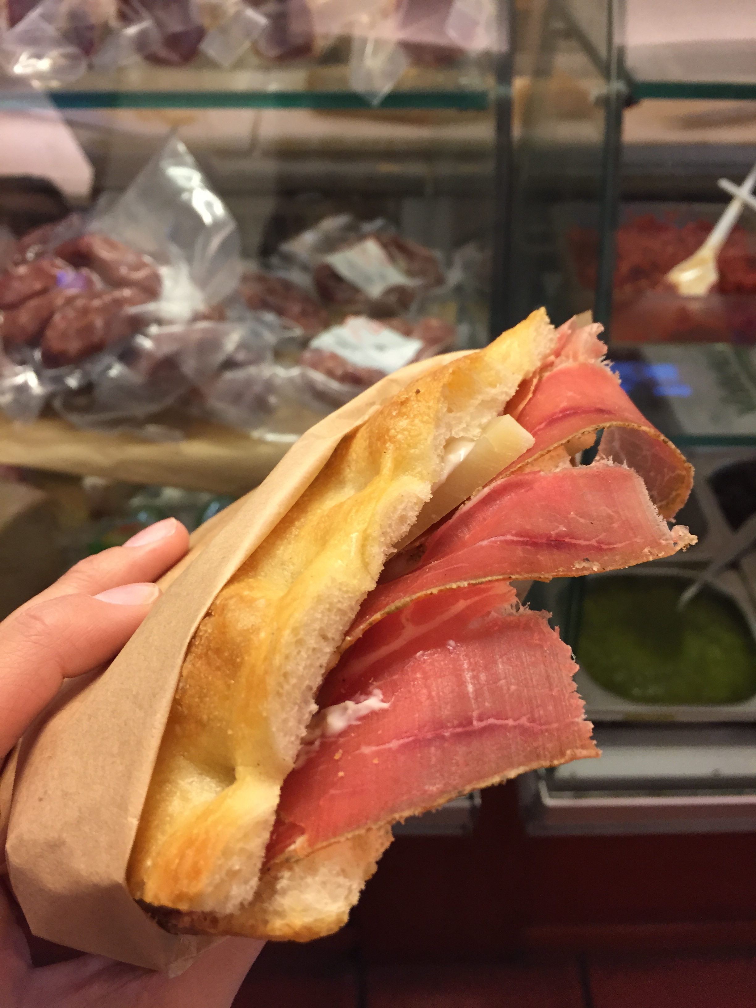 The lunch mission was finding tripe for Kevin, and not just any tripe- tripe from L’Antico Trippaio. Even though we had it marked on the map, it felt as if we spun circles with no luck finding it! Starving, we abandoned finding the store front that seemingly vanished from the map and instead popped into Maledetti Toscani. Looking back, this was one of our best accidents as we were treated to authentic and incredible paninis. I got prosciutto and pecorino with a mushroom spread and Kevin got salami and mozzarella with an anchovies spread both on fresh made focaccia bread. The spreads elevated these sandwiches to another level- so amazing and so simple.