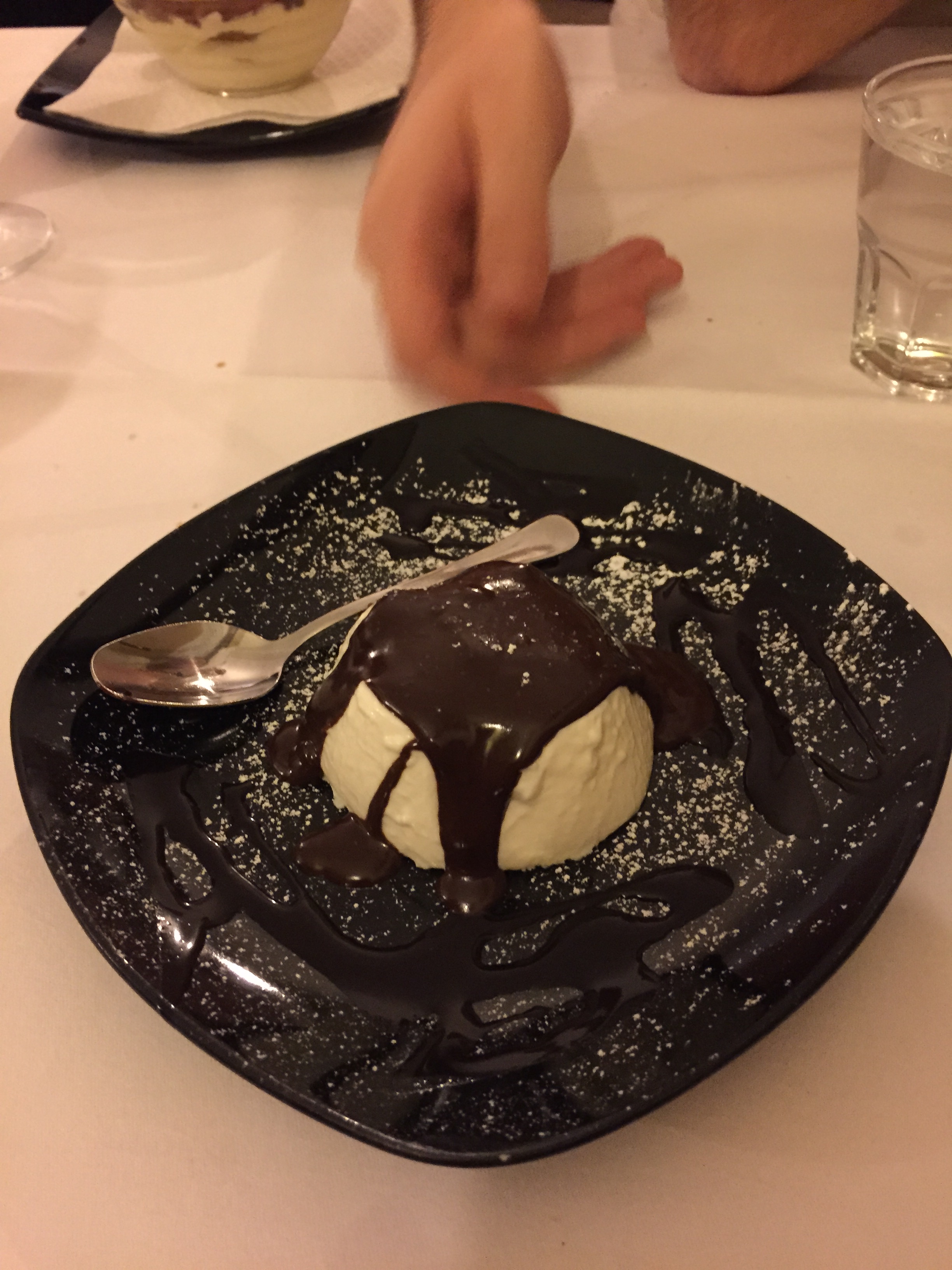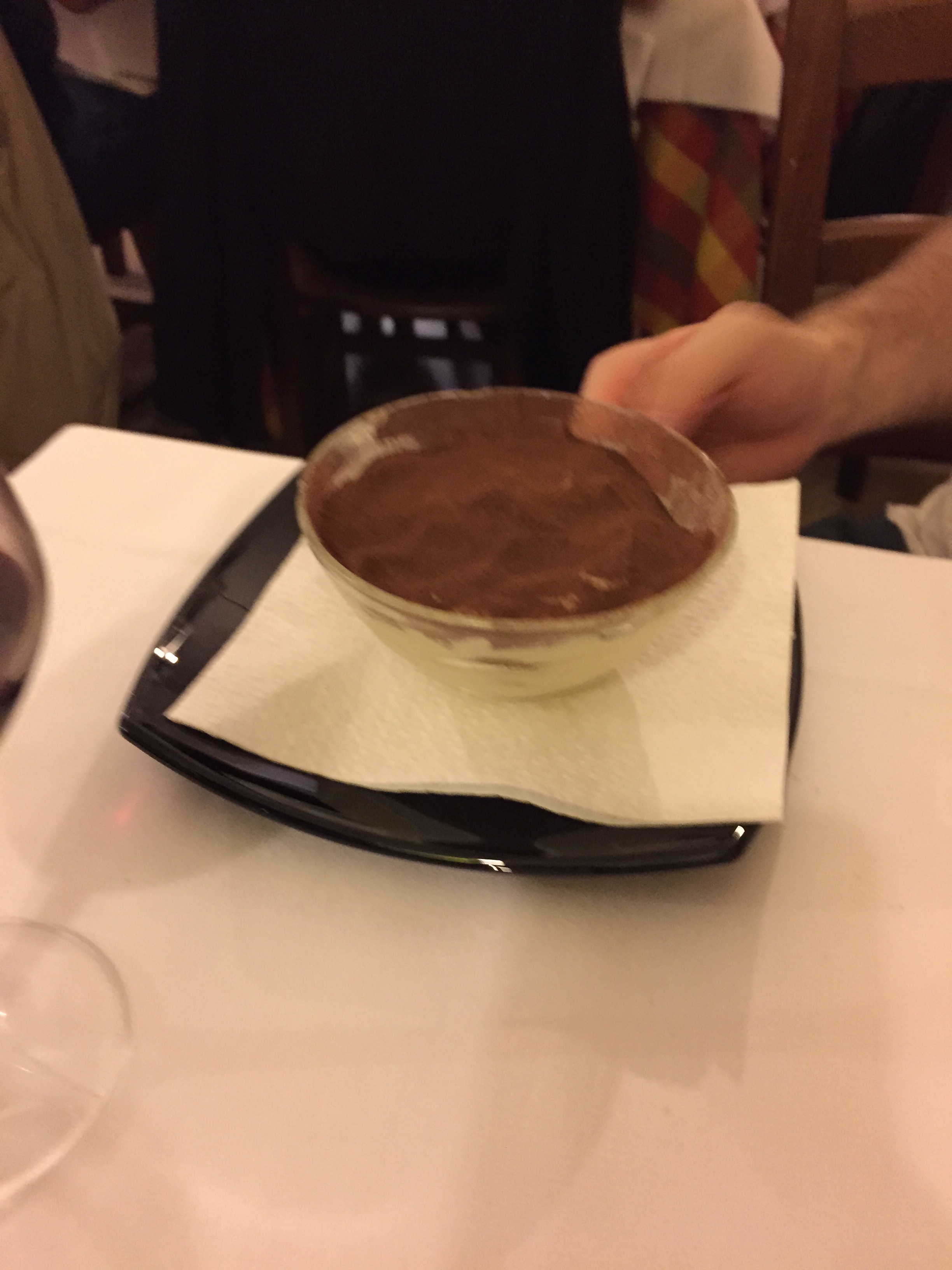 We were the first arrivals for our reservation at Antica Trattoria da Tito, which was a bit farther out of town in exchange for authentic Florentine cooking. It is difficult in major cities to navigate the tourist destinations so it was helpful to read reviews ahead of time- reviews from the locals are key- not just from vacationers. We started our meal with the house red wine, Chianti of course, along with grilled octopus with potatoes. For entrees, Kevin ordered the pappardelle al cinghiale (parpardelle with wild boar ragu) and I ordered the ravioli, served in a Florentine ragu- both were homemade, and you can tell from the delicate and flavorful pasta. Homemade desserts included panna cotta for me and tiramisu for Kevin. We were so delighted with our meal. To our surprise, we were greeted with shots of limoncello as we paid for our meal. The place was completely packed when we left around 9PM- glad we made reservations!